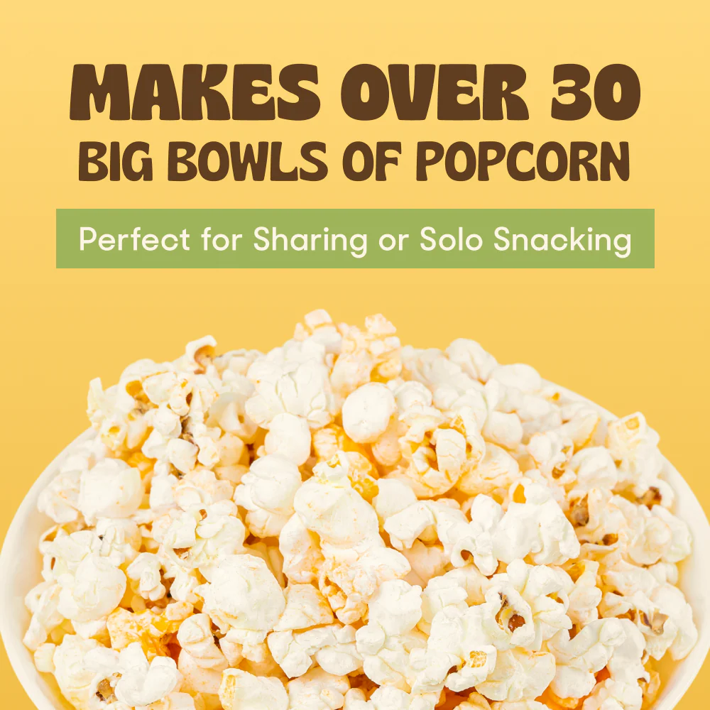 One jar makes over 30 big bowls of popcorn. Use it with your Popsmith Popper and our premium kernels for the tastiest results!